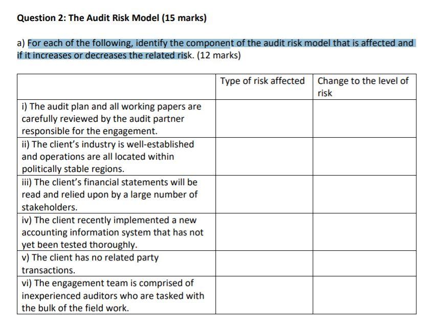 Solved Question 2 The Audit Risk Model 15 Marks A For Chegg Com