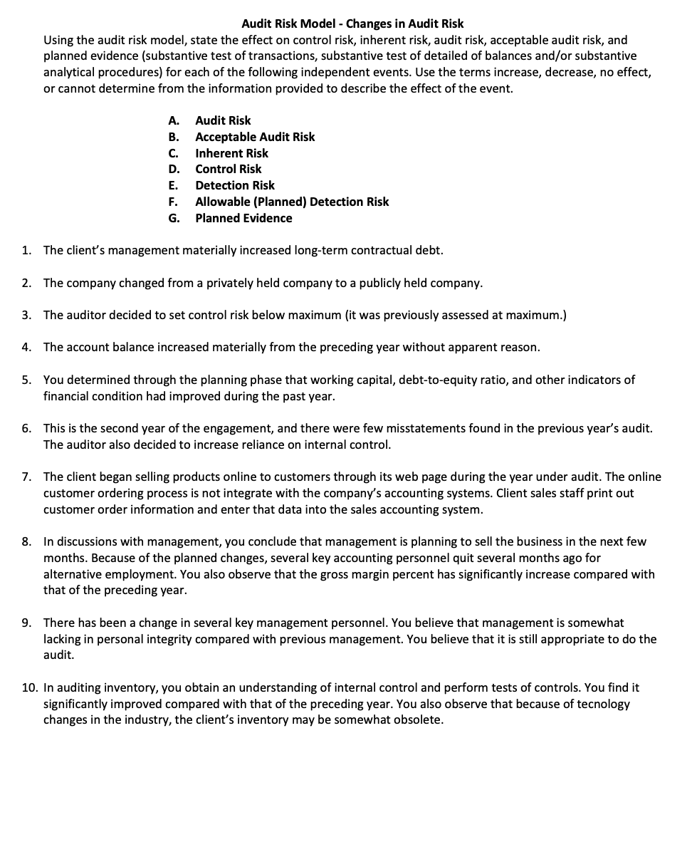 Solved Audit Risk Model Changes In Audit Risk Using The Chegg Com